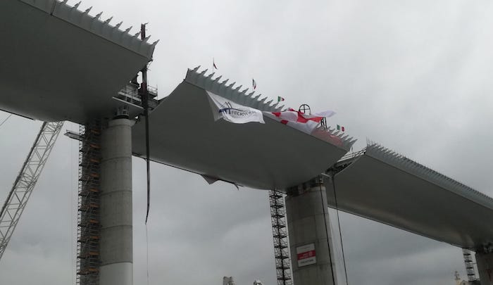 “Da oggi le due sponde della Valpolcevera tornano ad unirsi: l’impalcato del ponte è completo!