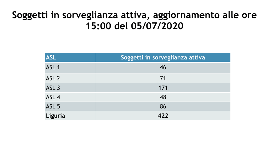 I dati sono stati comunicati intorno alle 17,30 di oggi dai responsabili di Regione Liguria.