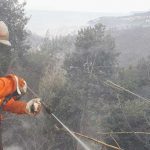 L’elicottero della Regione Liguria è sul posto ed inizia le operazioni di spegnimento, il vento è drasticamente calato e permette un buon lavoro.