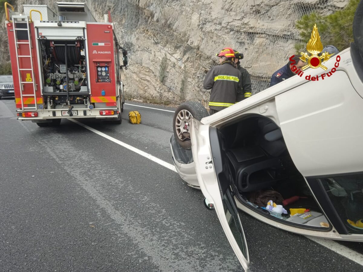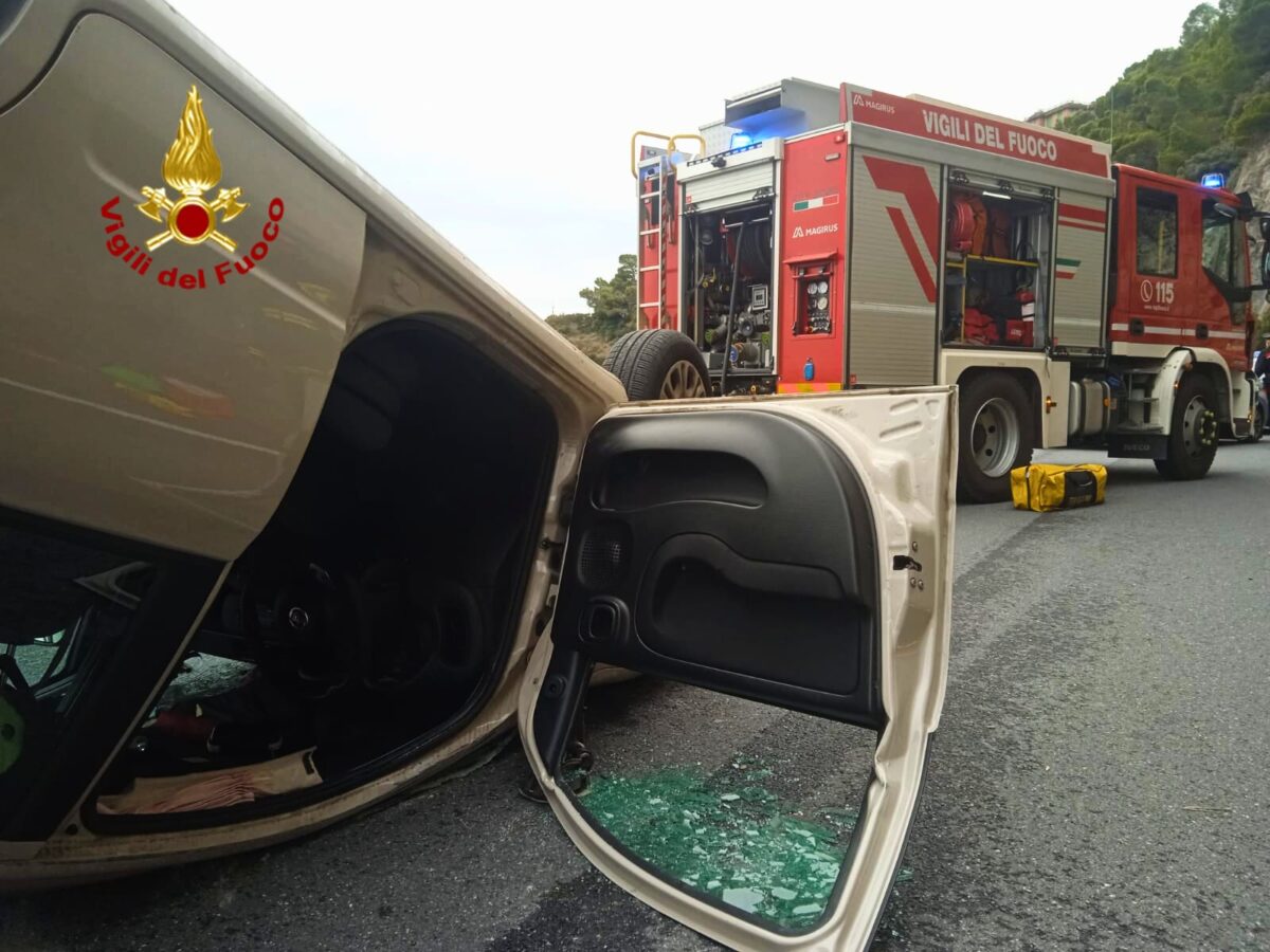 Incidente a Bergeggi: auto si ribalta sulla via Aurelia, conducente soccorso dai Vigili del Fuoco