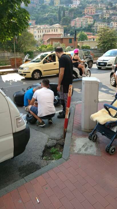 Incidente con ferito pochi minuti fa a Recco in via Roma all’incrocio con via Vecchia Vastato.