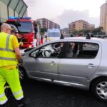 I due occupanti sono rimasti all’interno ed è stato richiesto l’intervento dei vigili del fuoco.