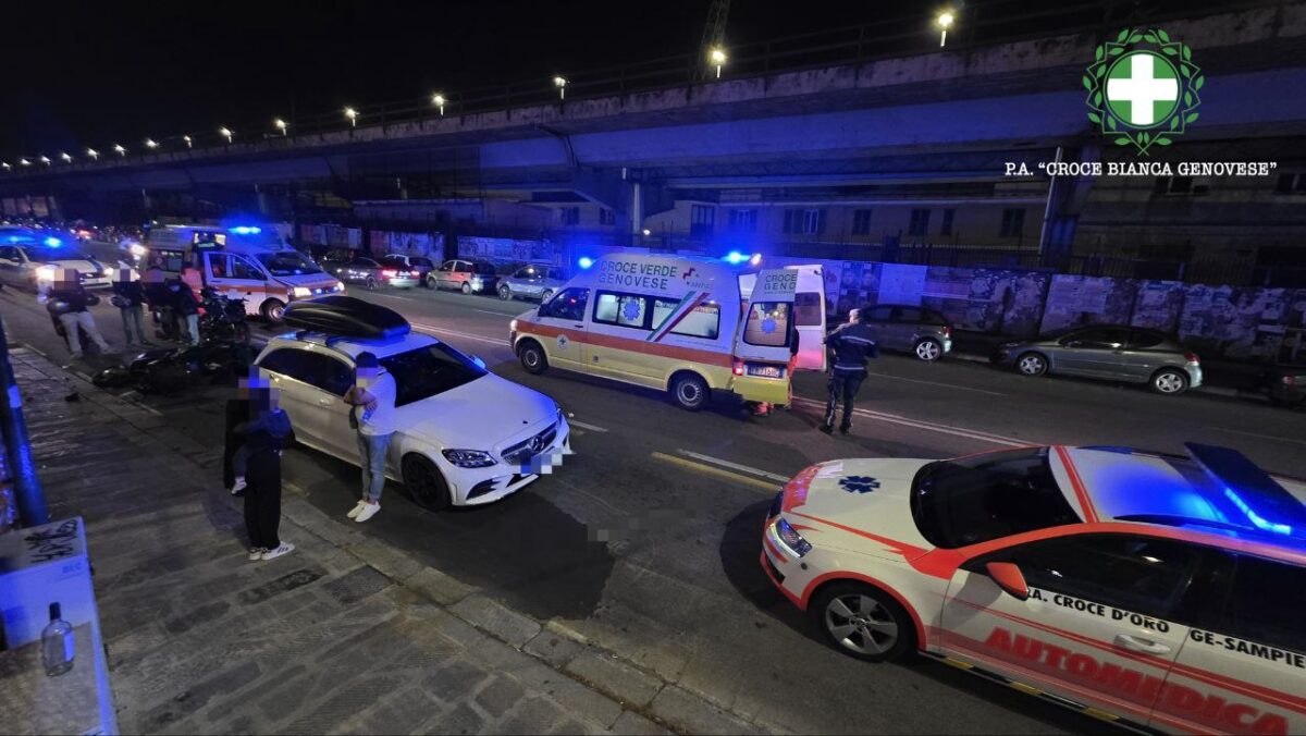 Incidente stradale nella tarda serata a Genova. Intorno alle 23:15, la Croce Bianca Genovese e l’automedica Golf 4 sono intervenute in corso Quadrio, direzione ponente, nei pressi del varco delle Grazie, per soccorrere i feriti di un violento scontro tra un’auto e uno scooter.