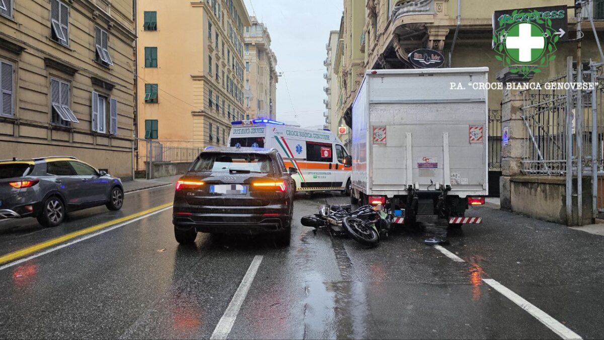 Incidente stradale nella tarda mattinata in via Montevideo, a Genova, dove un motociclista è rimasto ferito dopo un violento impatto che lo ha visto finire contro un camion fermo a margine della carreggiata. L’episodio si è verificato intorno alle 11, quando un’ambulanza della Croce Bianca Genovese, in transito nella zona per un trasporto sanitario, è stata richiamata da alcuni passanti che segnalavano la presenza di un uomo ferito sull’asfalto.