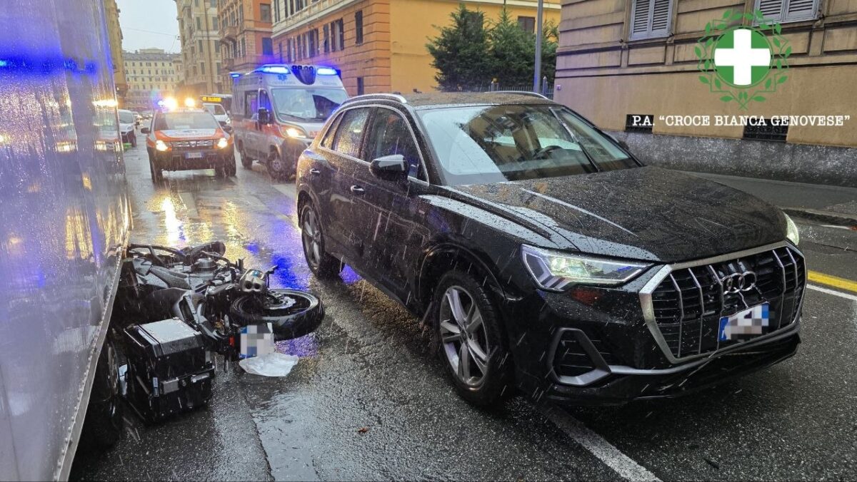 Sul luogo dell’incidente è intervenuta una seconda ambulanza della Croce Bianca Genovese, la 3-280, che ha preso in carico il motociclista e lo ha trasportato in codice giallo al Pronto soccorso del Policlinico San Martino. L’uomo lamentava dolore costale e sospetti traumi di lieve entità, che sono stati affidati alle valutazioni dei sanitari.