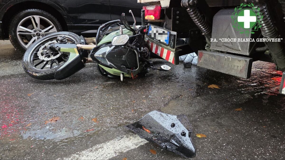 Incidente stradale nella tarda mattinata in via Montevideo, a Genova, dove un motociclista è rimasto ferito dopo un violento impatto che lo ha visto finire contro un camion fermo a margine della carreggiata. L’episodio si è verificato intorno alle 11, quando un’ambulanza della Croce Bianca Genovese, in transito nella zona per un trasporto sanitario, è stata richiamata da alcuni passanti che segnalavano la presenza di un uomo ferito sull’asfalto.