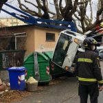 Infortunio sul lavoro sul Lungo Polcevera a Genova. Un operaio è finito nel fiume dopo che la piattaforma aerea su cui stava lavorando per tagliare alcuni rami di alberi si è ribaltata.