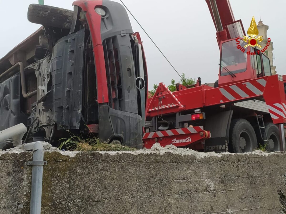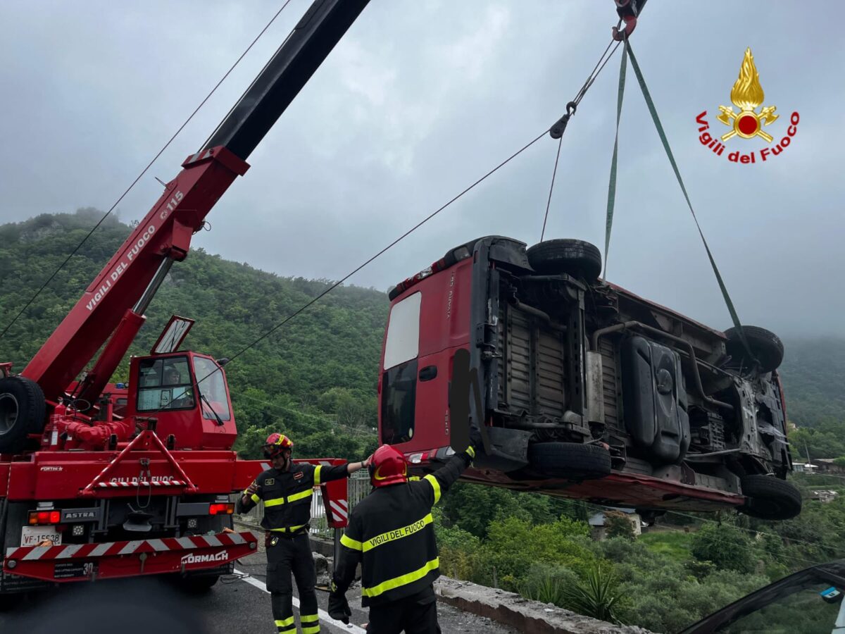 Il mezzo è finito nella proprietà privata adiacente alla strada, richiedendo un intervento tecnico particolarmente delicato da parte dei Vigili del Fuoco. Sul posto è intervenuta una squadra del Comando provinciale di Savona, supportata dal mezzo speciale 11R dotato di gru, utilizzato per mettere in sicurezza il veicolo e l’area circostante.
