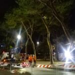 Nel mentre, alle 22.00, oltre alla polizia locale sono arrivati gli uomini dell’aster, “braccio esecutivo del Comune” ed è iniziato il taglio dei pini secolari.