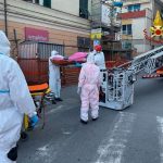 Intervento dei Vigili del fuoco a Sestri Ponente per evacuare una persona in forte sovrappeso per consentire il trasporto in ospedale.