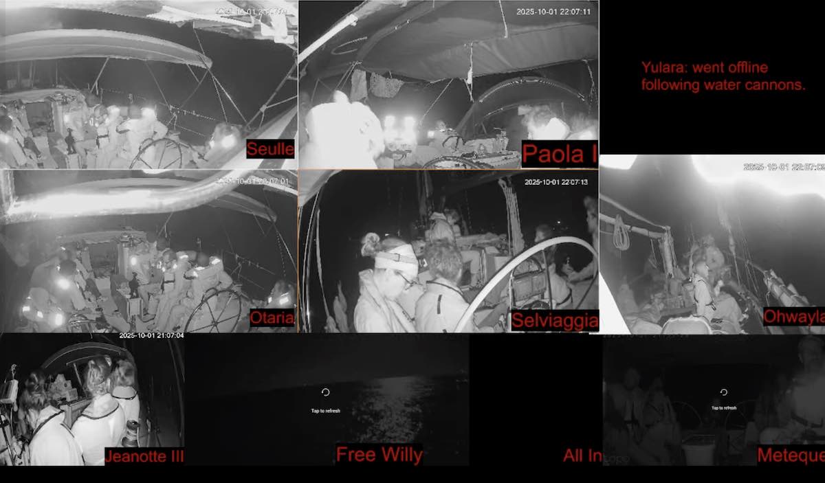 Le ultime immagini trasmesse in diretta dalla Flotilla hanno mostrato i primi movimenti delle forze israeliane, poi le connessioni si sono interrotte una dopo l’altra, fino al buio totale. L’intervento si è concluso in meno di un’ora: le imbarcazioni della Sumud Flotilla sono state affiancate dalle unità militari, che hanno proceduto all’abbordaggio e al fermo degli attivisti a bordo.