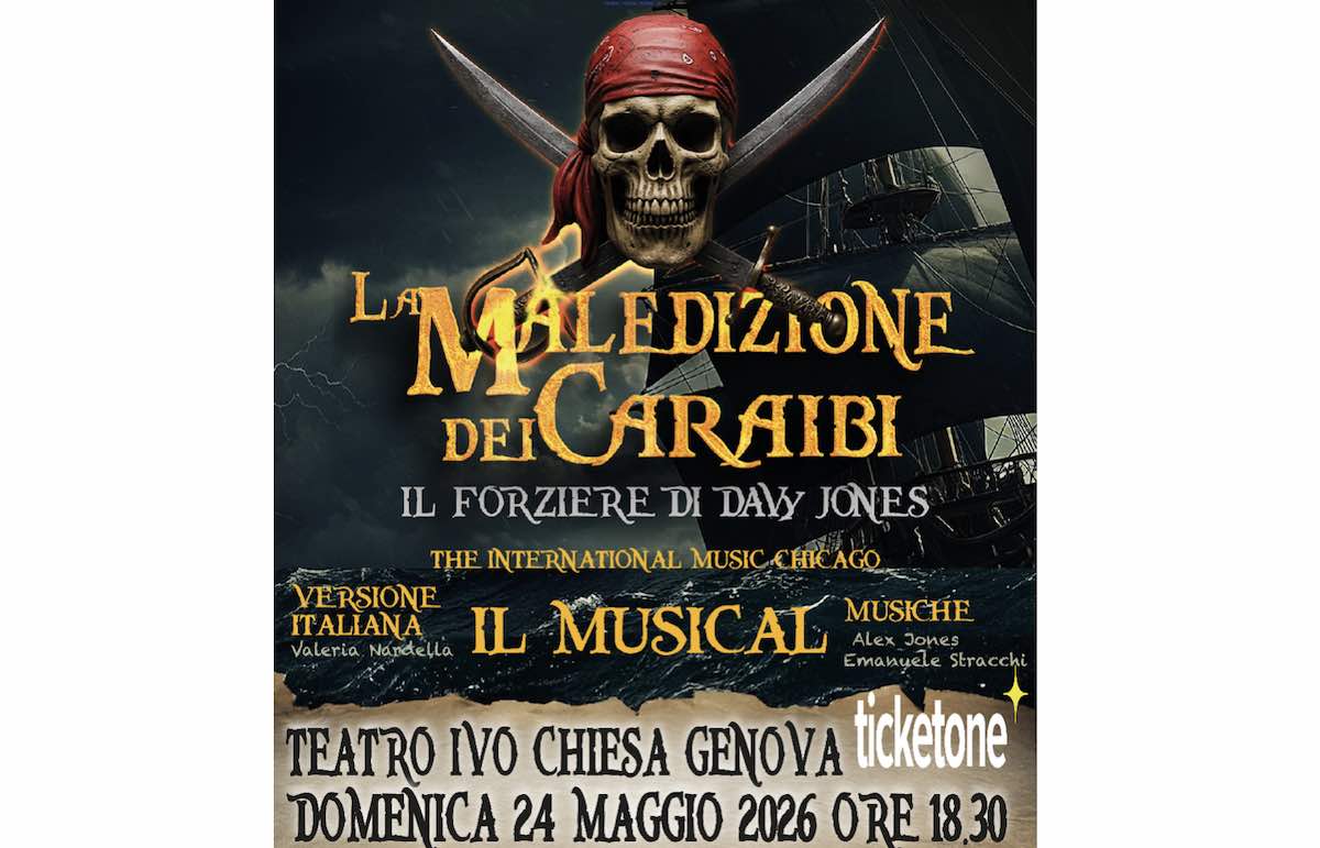 Il musical internazionale La Maledizione dei Caraibi farà tappa a Genova domenica 24 maggio 2026 alle 18.30, approdando sul palco del Teatro Ivo Chiesa. Lo spettacolo, prodotto da Patagonia Pictures, rientra in una tournée nazionale che accompagnerà la produzione per tutto il 2026 nei principali teatri italiani, confermando l’ampio respiro del progetto artistico.