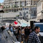 Presenti anche cartelli contro Toti. Contestato ex premier Conte