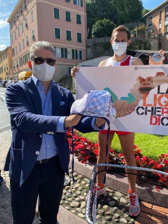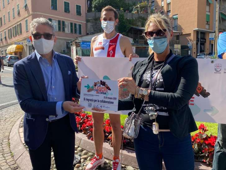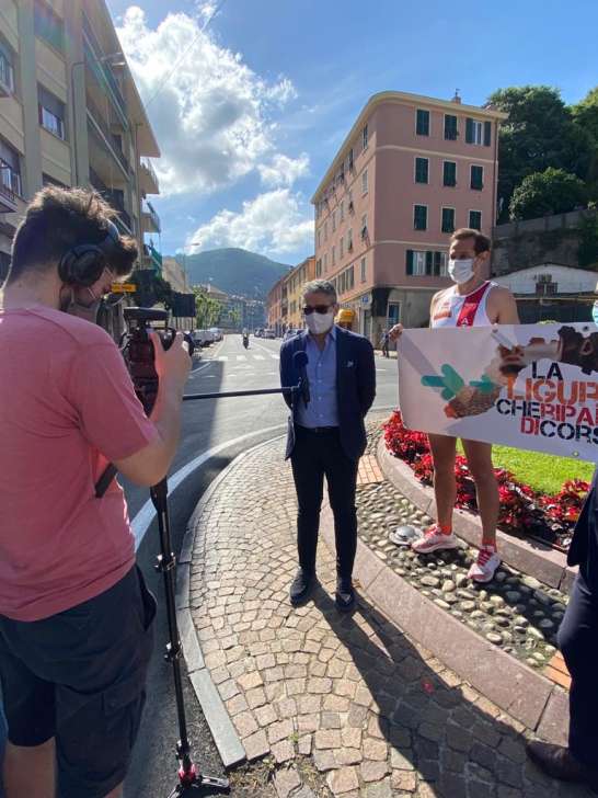 Questa è la sosta a Recco per “La Liguria che riparte. Di corsa”, staffetta individuale, con un solo runner per la tratta, da Ventimiglia a La Spezia, per coprire tutto il percorso di 266 km.