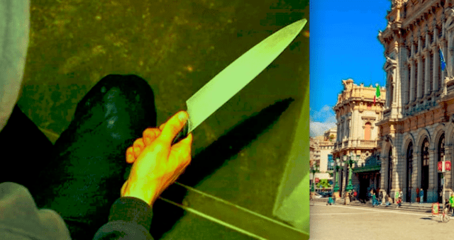 Coltello e stazione Brignole a Genova