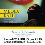 Lunedi 23 luglio alle ore 21.15 presso l’Arena Conchiglia, Sestri Levante la compagnia teatrale Teatro Libero di Palermo presenta Medea Kali. Testo di Laurent Gaudé, traduzione e regia di Beno Mazzone, musiche di Antonello Guida, luci di Fiorenza Dado. Lo spettacolo che vede protagonista Viviana Lombardo.