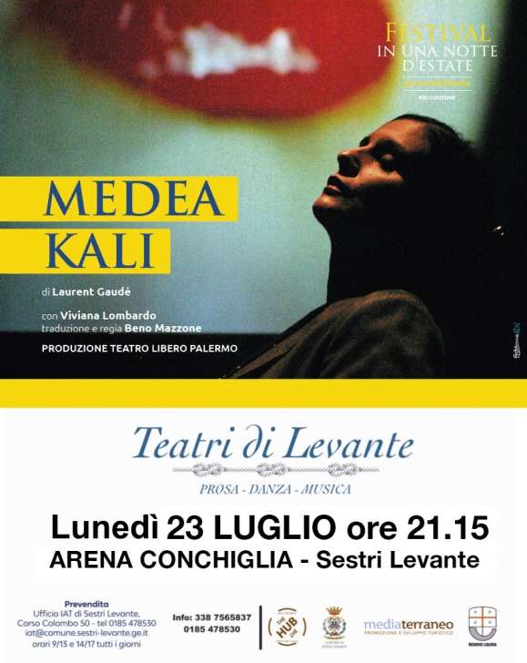 Lunedi 23 luglio alle ore 21.15 presso l’Arena Conchiglia, Sestri Levante la compagnia teatrale Teatro Libero di Palermo presenta Medea Kali. Testo di Laurent Gaudé, traduzione e regia di Beno Mazzone, musiche di Antonello Guida, luci di Fiorenza Dado. Lo spettacolo che vede protagonista Viviana Lombardo.