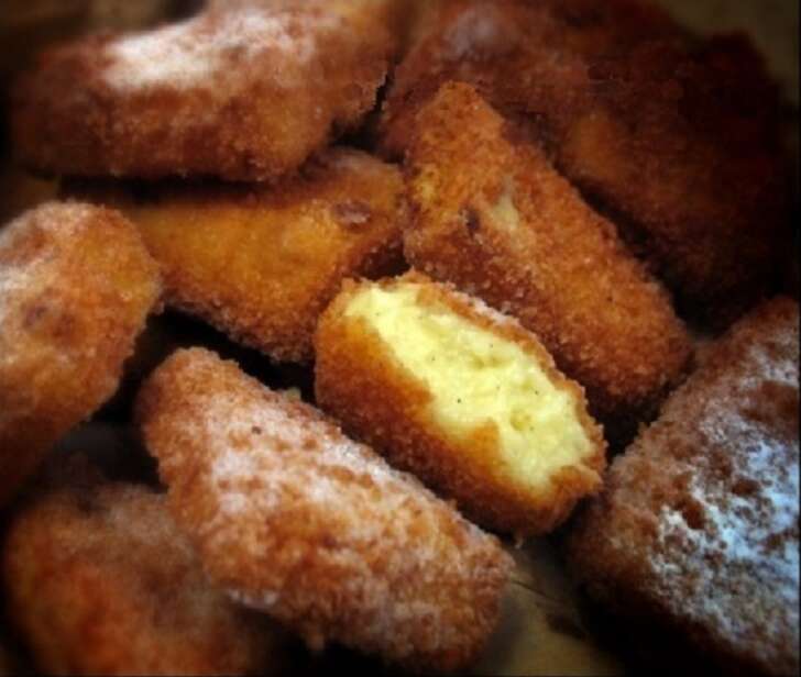 Ingredienti: 500 ml latte, 3/4 uova, 3 cucchiai di zucchero, 4 cucchiai colmi di farina. Una stecca di vaniglia, scorza di limone, pane grattato, olio per friggere. Per il “latte brusco” si sostituisce il limone e la vaniglia con la cipolla tritata e il prezzemolo. Antonio Bovetti