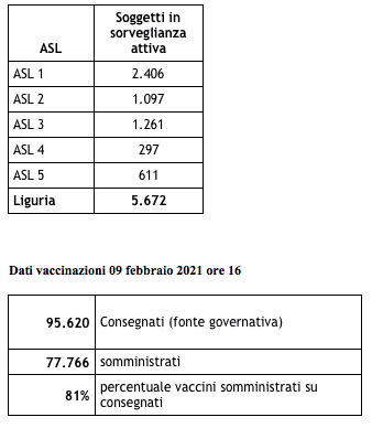 Ecco il bollettino di oggi con tutti i dati ufficiali inviati da Regione Liguria al ministero della Salute.
