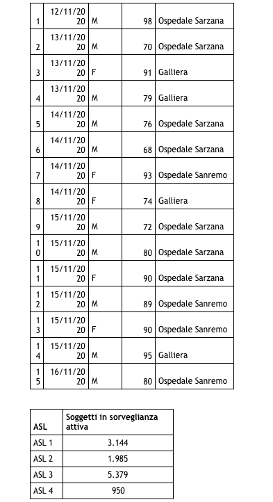 I dati sono stati comunicati intorno alle 18 di oggi dai responsabili di Regione Liguria.