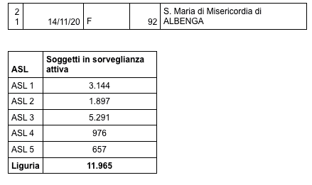 I dati sono stati comunicati intorno alle 18 di oggi dai responsabili di Regione Liguria.