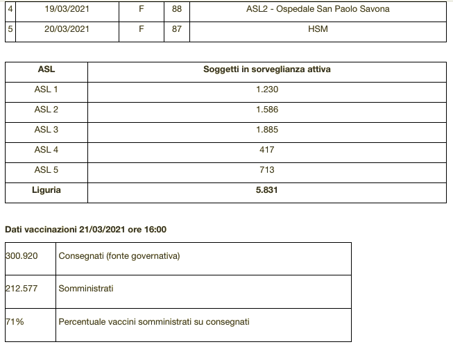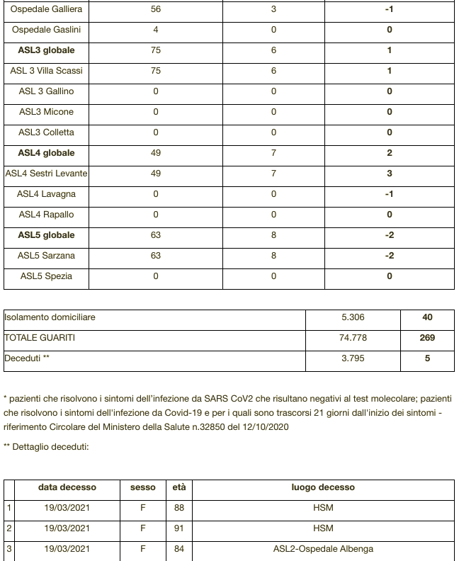 Ecco il bollettino di oggi con tutti i dati ufficiali inviati da Regione Liguria al ministero della Salute.