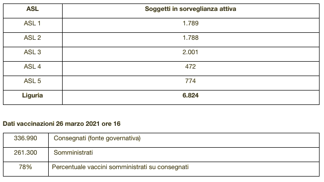 Ecco il bollettino di oggi con tutti i dati ufficiali inviati da Regione Liguria al ministero della Salute.