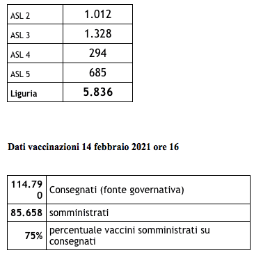 Ecco il bollettino di oggi con tutti i dati ufficiali inviati da Regione Liguria al ministero della Salute.