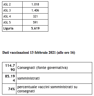 Ecco il bollettino di oggi con tutti i dati ufficiali inviati da Regione Liguria al ministero della Salute.