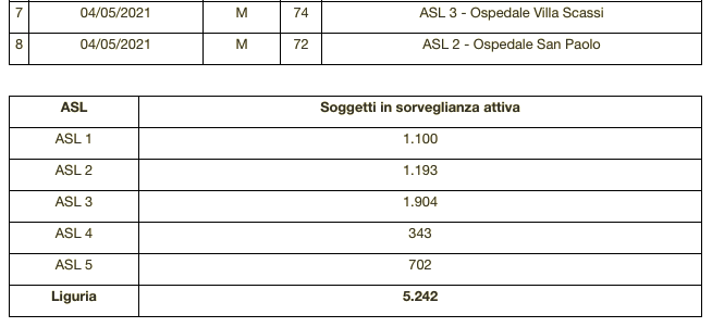 Ecco il bollettino di oggi con tutti i dati ufficiali inviati da Regione Liguria al ministero della Salute.