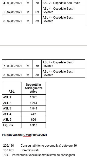 Ecco il bollettino di oggi con tutti i dati ufficiali inviati da Regione Liguria al ministero della Salute.