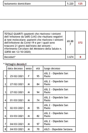 In altre parole, Regione Liguria indica gli “attualmente positivi” e potenzialmente contagiosi. Significa che conteggia solo chi è stato accertato finora positivo al coronavirus (ospedalizzati + domiciliati + positivi clinicamente guariti = attualmente positivi), escludendo però dal computo chi è guarito sviluppando gli anticorpi e chi è deceduto.