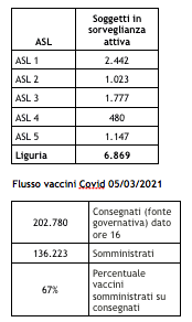 Ecco il bollettino di oggi con tutti i dati ufficiali inviati da Regione Liguria al ministero della Salute.