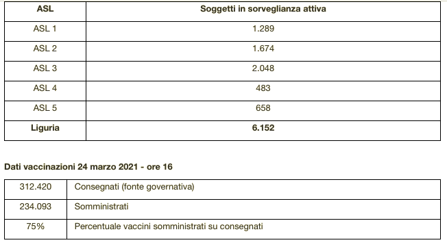 Ecco il bollettino di oggi con tutti i dati ufficiali inviati da Regione Liguria al ministero della Salute.