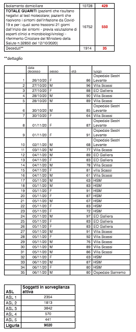 I dati sono stati comunicati intorno alle 18 di oggi dai responsabili di Regione Liguria.