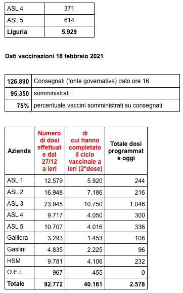 Ecco il bollettino di oggi con tutti i dati ufficiali inviati da Regione Liguria al ministero della Salute.