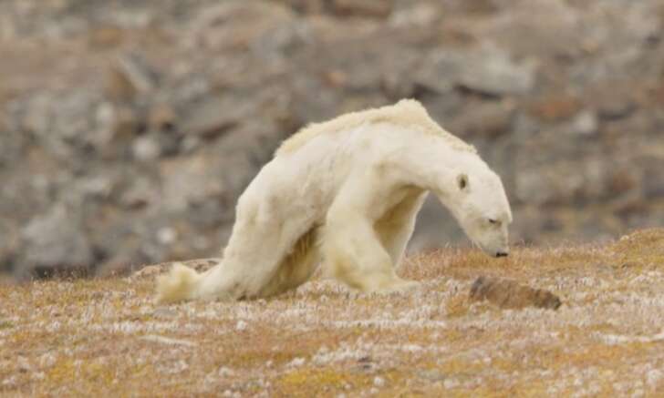 Da sempre l’orso ha cacciato le foche, la sua preda preferita, da sole o in branco, aspettando di incontrarle sulla neve o scavando buchi nel ghiaccio per attirarle alla superficie e intrappolarle. Le foche, con il loro grasso, assicurano agli orsi calorie sufficienti alla vita quotidiana senza spendere fatica per cacciare. Il manto di ghiaccio artico dal 1979 a oggi si è ristretto in media del 13% ogni decennio, con il disfacimento della coltre ghiacciata, di conseguenza, per l’orso è necessario nuotare tre o quattro giorni per raggiungere le sue prede. Ciò significa che deve spendere da tre a quattro volte più energia per procurarsi il cibo.