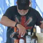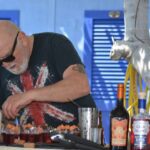 Barba bianca curata, Luca cela lo sguardo dietro un paio di Ray Ban scuri, indossa una maglietta sulla quale sfuma a tutto campo la bandiera britannica e calca in testa un cappellino trucker effetto rovinato con logo “Suck My Cocktail”. È perfettamente in parte mentre, come un vero alchimista, dispone sul banco all’aperto gli ingredienti delle sue miscelazioni.