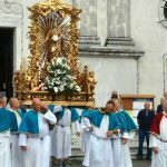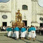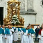 “Mamma raccontami chi c’era in processione, cosa facevano?”. “Devi sapere che fin dalla prima volta che la statua venne portata per le vie del paese queste si illuminarono a festa, mentre un accompagnamento musicale impreziosiva la processione. A tratti si sentivano mortaretti scoppiare qua e là per tutto il paese”. “Ma i fuochi d’artificio c’erano già?” chiese la bimba con sguardo incuriosito.