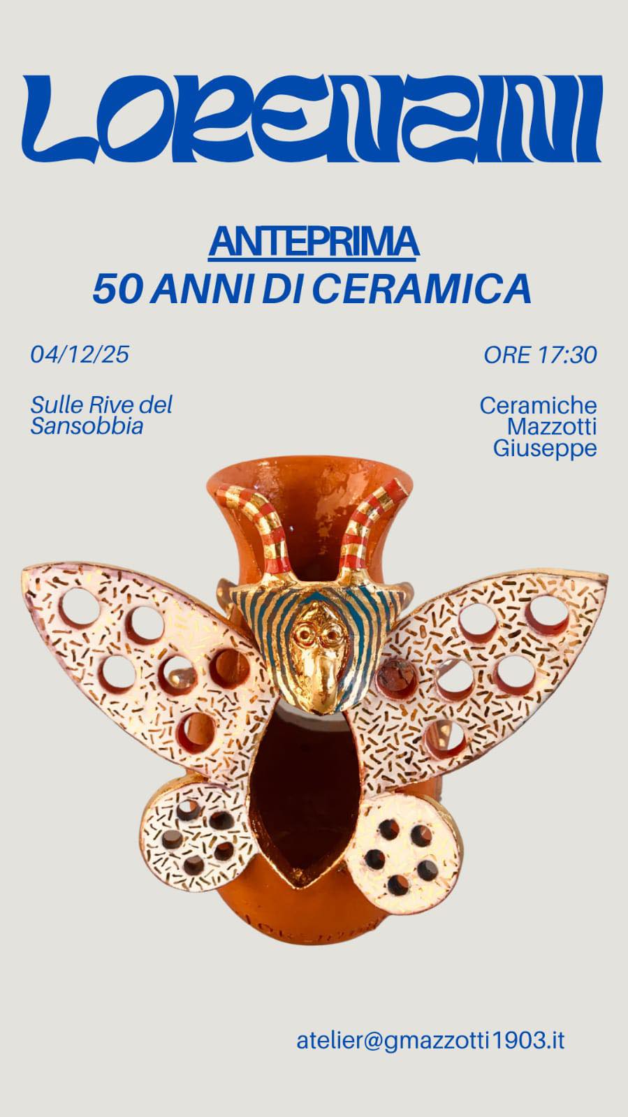 Albisola. Appuntamento imperdibile per gli appassionati d’arte ed in particolare della ceramica all’ Atelier Mazzotti giovedì alle 17 e 30 per incontrare il Maestro Sandro Lorenzini che festeggerà i 50 anni di Ceramica. Per Lorenzini si tratta di un compleanno importante: le nozze d’oro con la ceramica e con Albisola. Il Maestro racconterà anche episodi ed aneddoti legati ai suoi amici artisti e non. “Giusto cinquant’anni fa, nell’estate del 1975- spiega lo stesso Lorenzini-  venni ad Albisola con la precisa volontà di fare dell’arte, arte della Ceramica. Iniziai proprio ad Albissola Marina il lungo cammino che mi ha condotto ad essere scultore ceramista noto e apprezzato in tutto il mondo. Cinquant’anni sono davvero qualcosa e le mie nozze di allora con la Ceramica sono oggi nozze d’oro, che coronano un percorso consapevole, intenso e fedele durante il quale ho declinato la terra in mille modi possibili. Per celebrare questo importante cinquantennale ho voluto farmi un regalo all’insegna garbata dell’oro: cinquanta piccoli racconti, col tono leggero di uno scherzo, che giovedì sera presenterò in anteprima nella fabbrica di Tullio Mazzotti, ove essi sono nati, e dove, con i presenti voglio semplicemente far festa”. Lorenzini, che ha esposto in tutto il mondo ed ha ricevuto una sfilza di riconoscimenti, è uno dei più grandi artisti contemporanei.