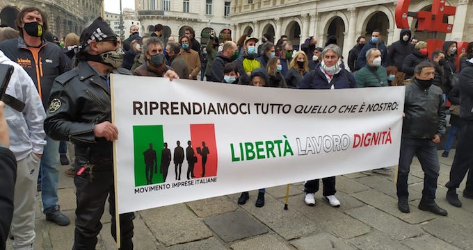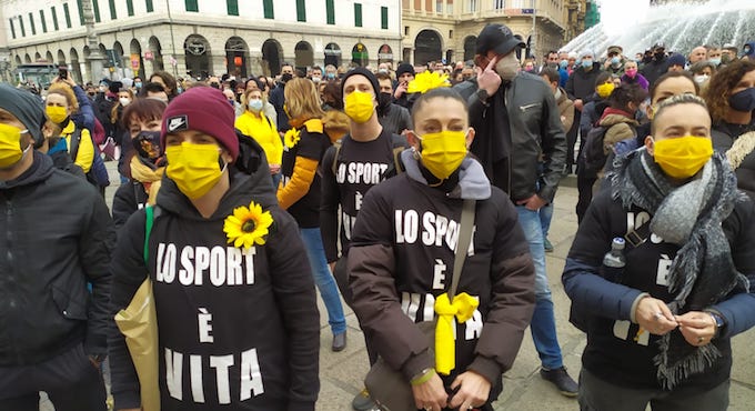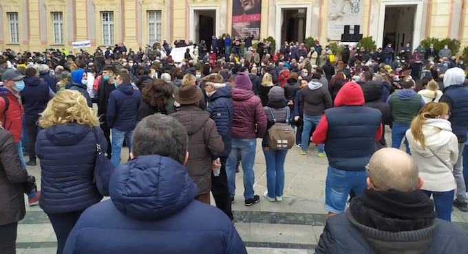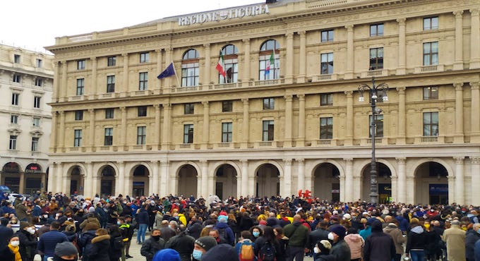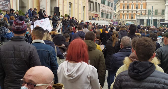 E’ la sostanza degli slogan e la sintesi dei discorsi che oggi pomeriggio, in piazza De Ferrari, un migliaio di genovesi arrabbiati, ma sempre composti e pacifici, hanno ribadito a gran voce contro le restrizioni imposte dall’Iss-Ministero della Salute: “Ci siamo messi in sicurezza e gli untori non siamo noi”.