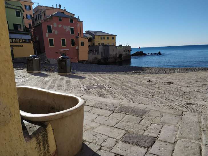 Emergenza coronavirus. Splende il sole, ma niente ressa a Boccadasse, come avvenuto lo scorso weekend.