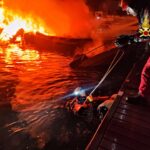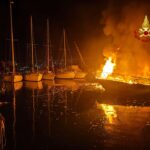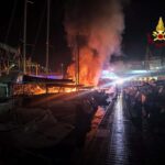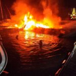 I pompieri hanno spento il rogo l’incendio dopo alcune ore, mentre i sommozzatori in acqua hanno evitato il coinvolgimento degli altri natanti vicini.