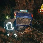 Una Fiat Panda, per cause ancora in via di accertamento, era uscita fuori strada in una curva rimanendo in bilico su una scarpata.