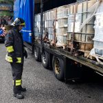 Un autotreno era carico con dei fusti di olio residuo di lavorazioni, da una di queste cisterne è iniziata la fuoriuscita di liquido.