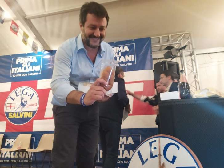 Folla in delirio quando il “Capitano” del Carroccio ha chiuso il comizio lanciando merendine dal palco: “No all’aumento delle tasse. Contro il Governo delle poltrone tutti il 19 ottobre a Roma” e ha quindi bevuto un sorso d’acqua: “E’ gassata, la bevo prima che tassino pure questa”.