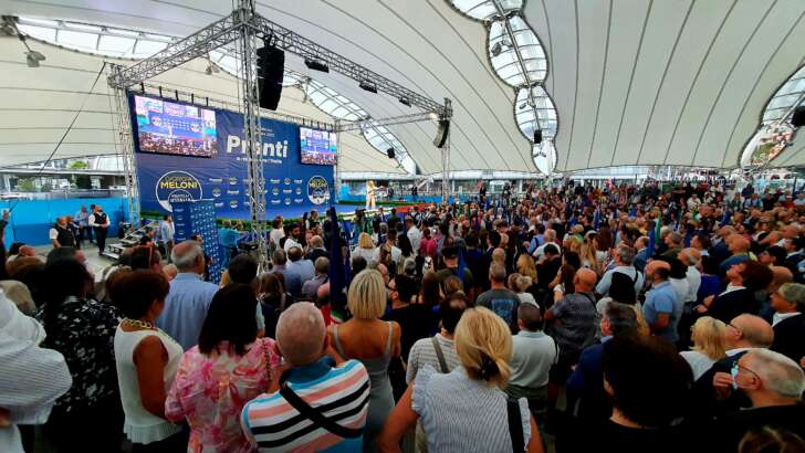 Pienone per Giorgia Meloni a Genova al Porto Antico. La leader di Fratelli d’Italia, al grido di “Giorgia! Giorgia!” è stata accolta a Genova sotto il tensostruttura di piazza delle Feste.
