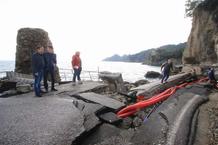 Questa mattina il consigliere delegato alla Viabilità della Città Metropolitana di Genova Franco Senarega era sul posto della frana insieme ai tecnici, al sindaco Paolo Donadoni e al vicesindaco Emanuele Cozzio di Santa Margherita Ligure, per verificare i primi interventi: l’installazione della ‘Linea Vita’ cioè il cavo che consente di ancorarsi per lavorare in sicurezza.