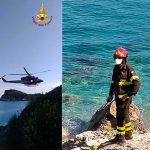 Poi i Vigili del fuoco del Nucleo SAF, Speleo Alpino Fluviale, a bordo dell elicottero si è calato sulla scogliera e ha stabilizzato il ferito insieme al Personale Medico presente a bordo dell’elicottero.