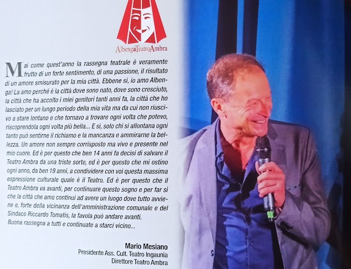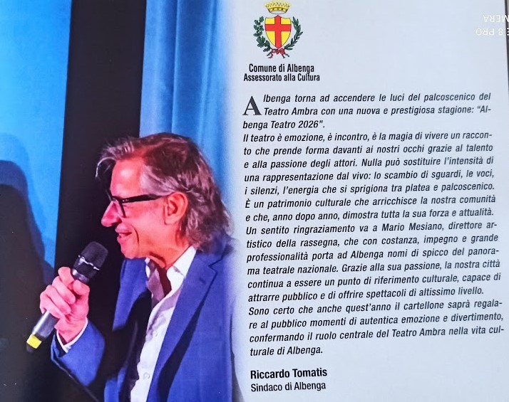 Per i nuovi abbonati la segreteria sarà aperta il 29 novembre ed il 6 dicembre con lo stesso orario. I biglietti per i singoli spettacoli saranno disponibili a partire dal 9 dicembre presso la Libreria “Quarta di copertina” in Via Enrico d’Aste. “AlbengAteatro2026”, si concluderà il 12 aprile con “Le ragazze son tornate” scritto e diretto da Diego Ruiz con Corinne Clery, Fiordaliso e Daniela Poggi. La nuova stagione teatrale di Albenga, che è stata presentata ufficialmente al Teatro Ambra da Mario Mesiano ha visto anche la presenza di un folto pubblico e del sindaco di Albenga Riccardo Tomatis. La rassegna offre un programma ricco di spettacoli di vario genere, qualità, con artisti desiderosi di salire sul palco e proporre il proprio talento. Prima del via della stagione il cartellone prevede lo spettacolo “Lumecan” di David Conati e Massimo Schiavon , regia di Giorgio Caprile, in programma il 6 dicembre alle ore 18. Prosegue intanto la rassegna “L’Ambra Rosa” che vedrà in scena Carla Lombardi e Mario Mesiano domenica 16 novembre alle ore 18 in “Domani…” di Carla Lombardi. Claudio Almanzi